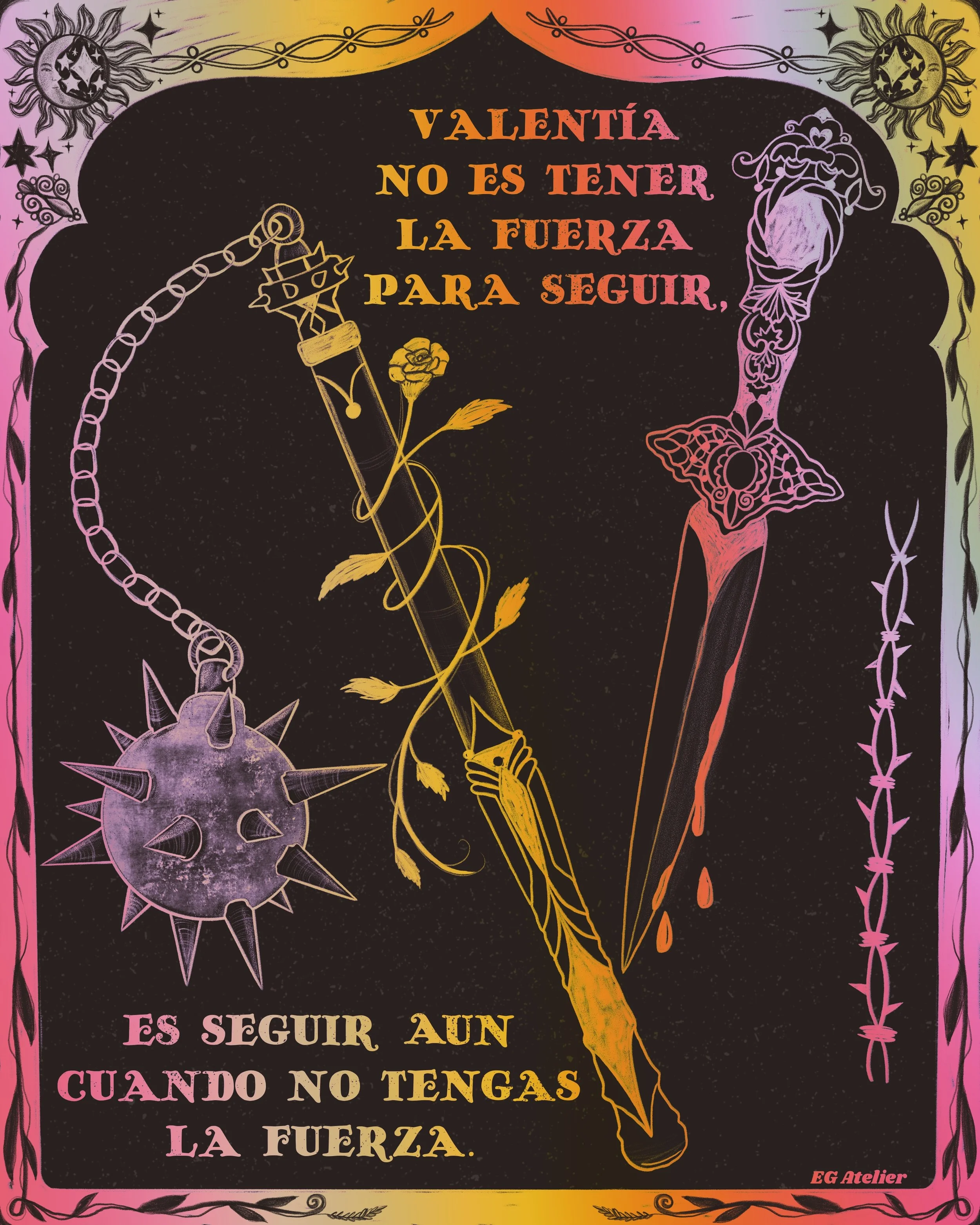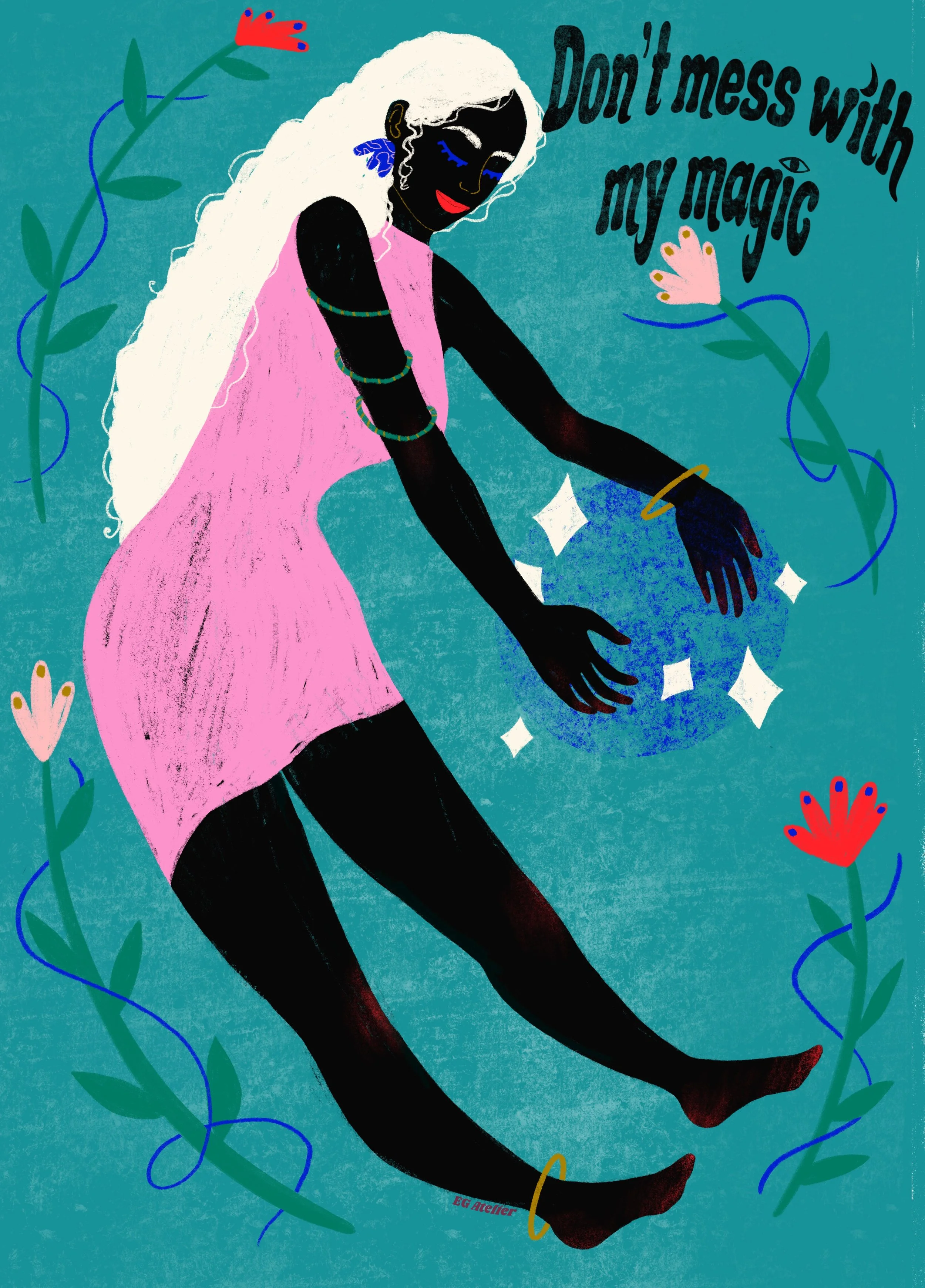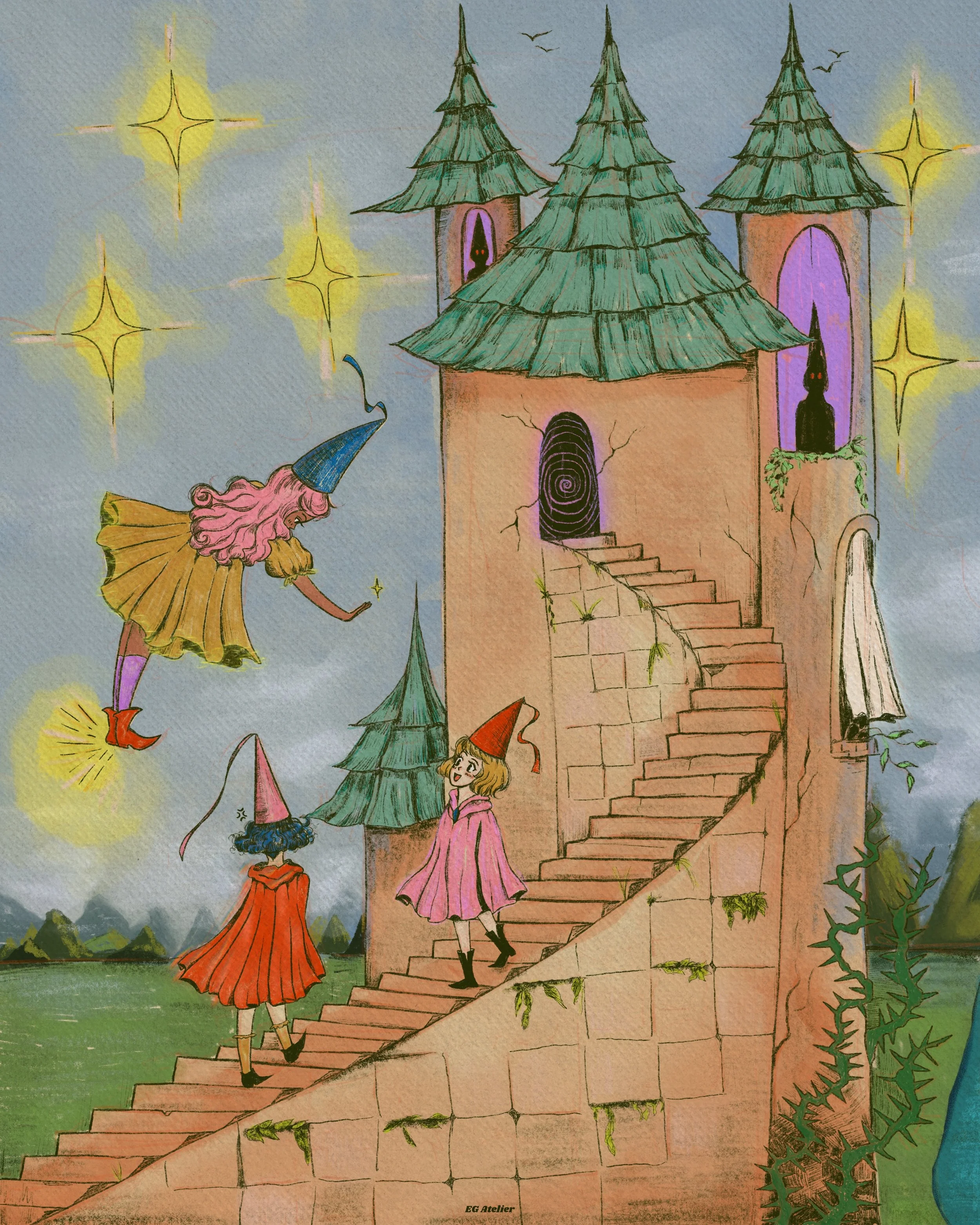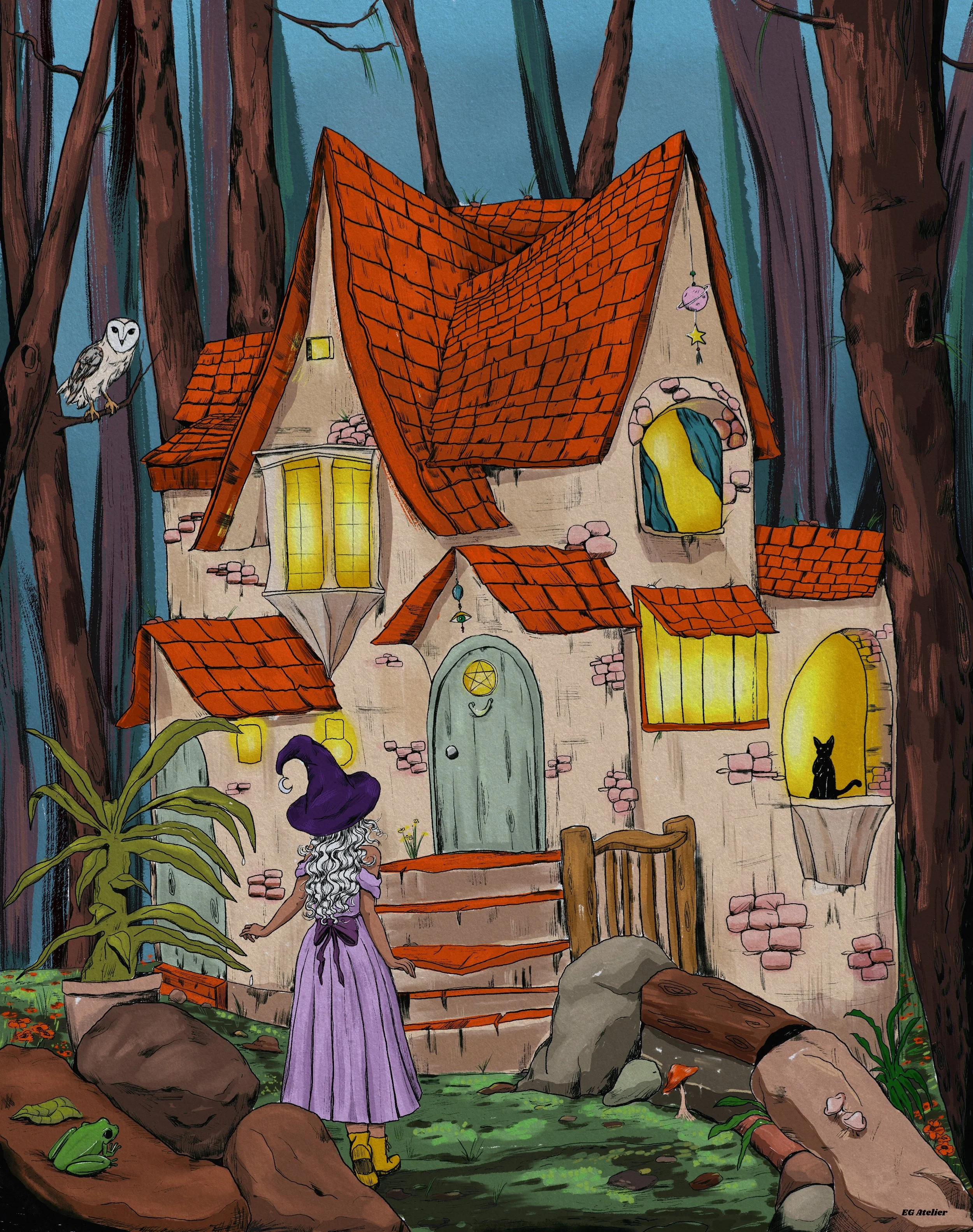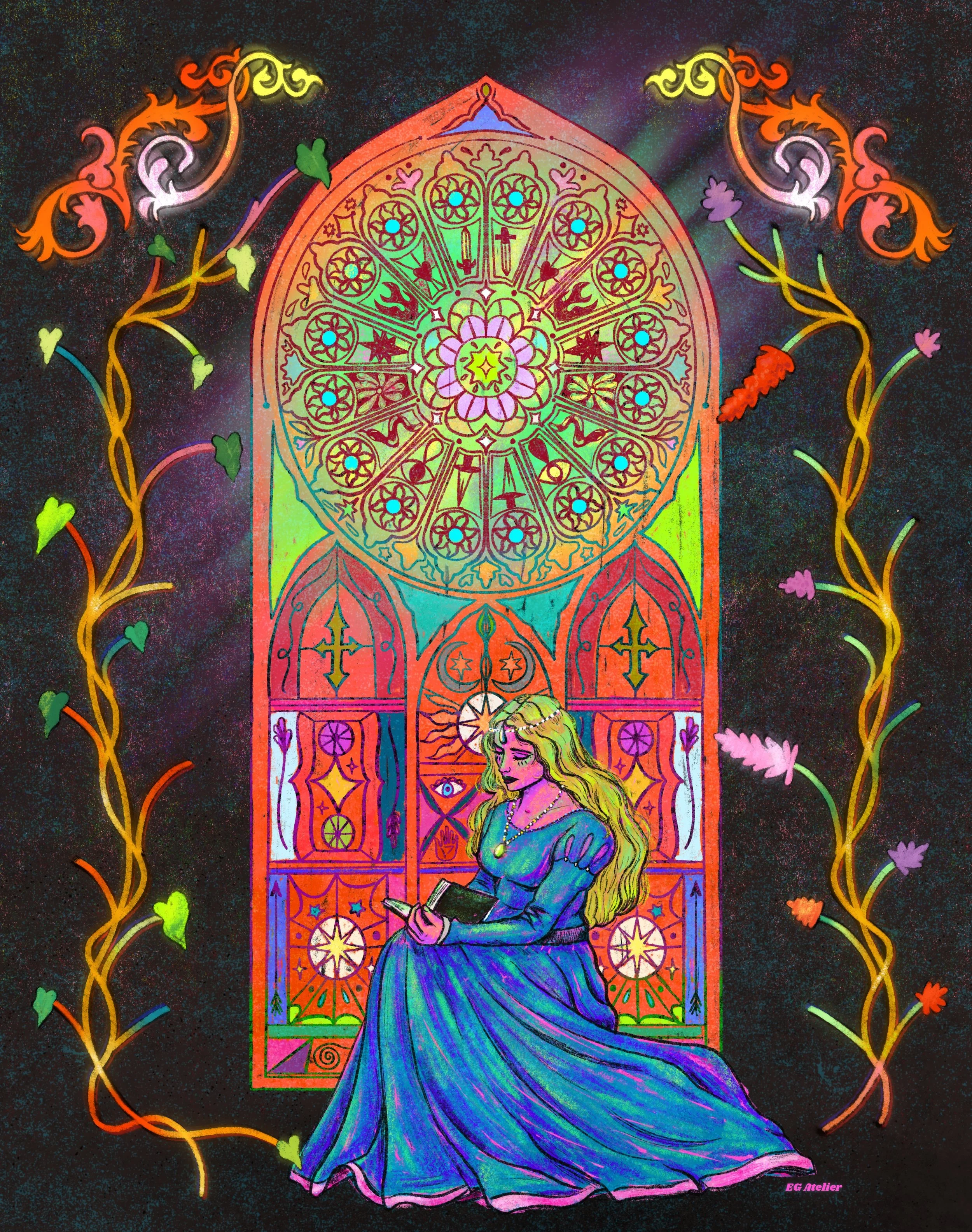 Hand drawn illustrations in both digital and traditional mediums. Most tranformed into a variety of items such as art posters, stickers, bookmarks, Tshirts, and more for my small business EG Atelier.