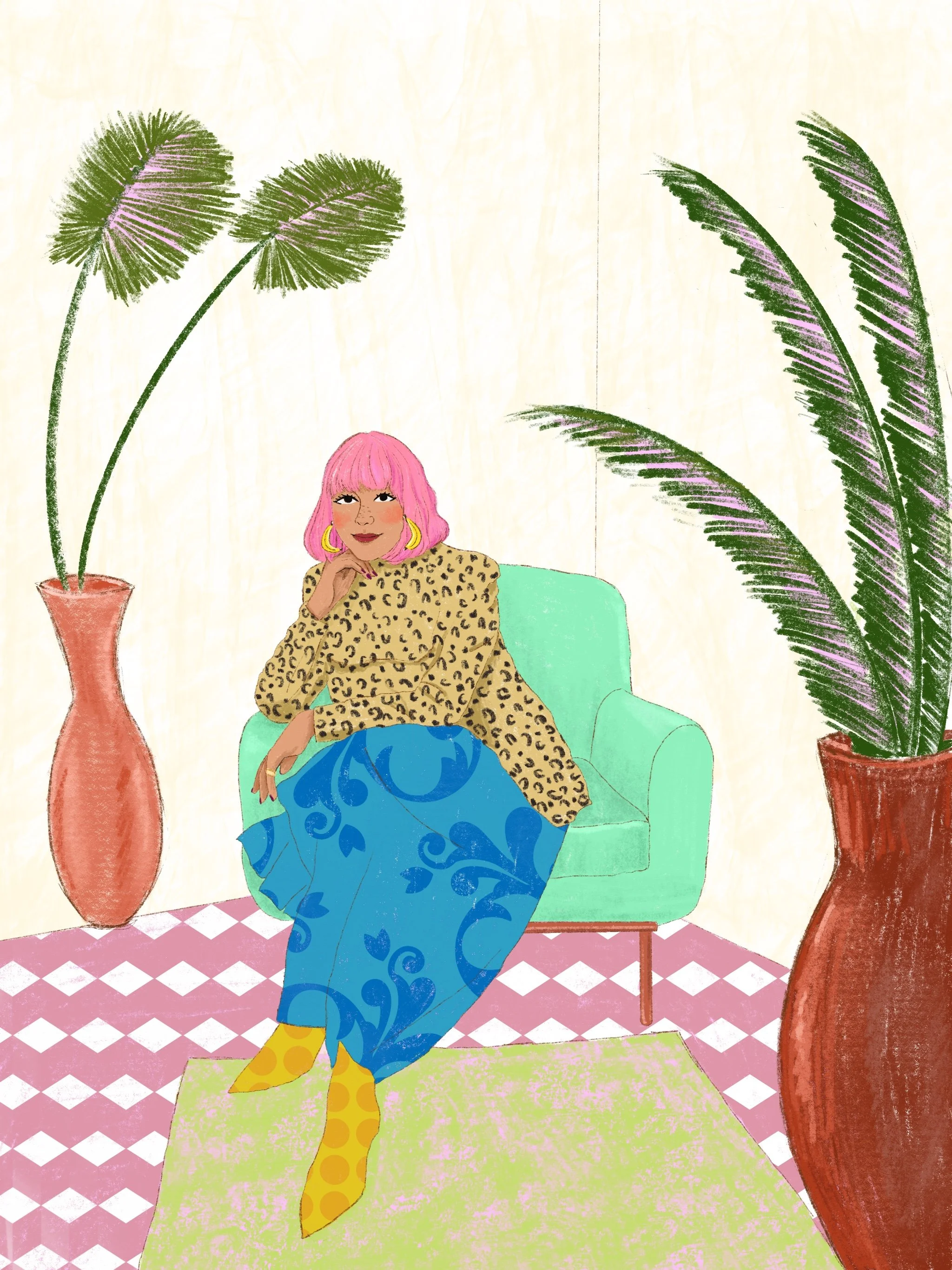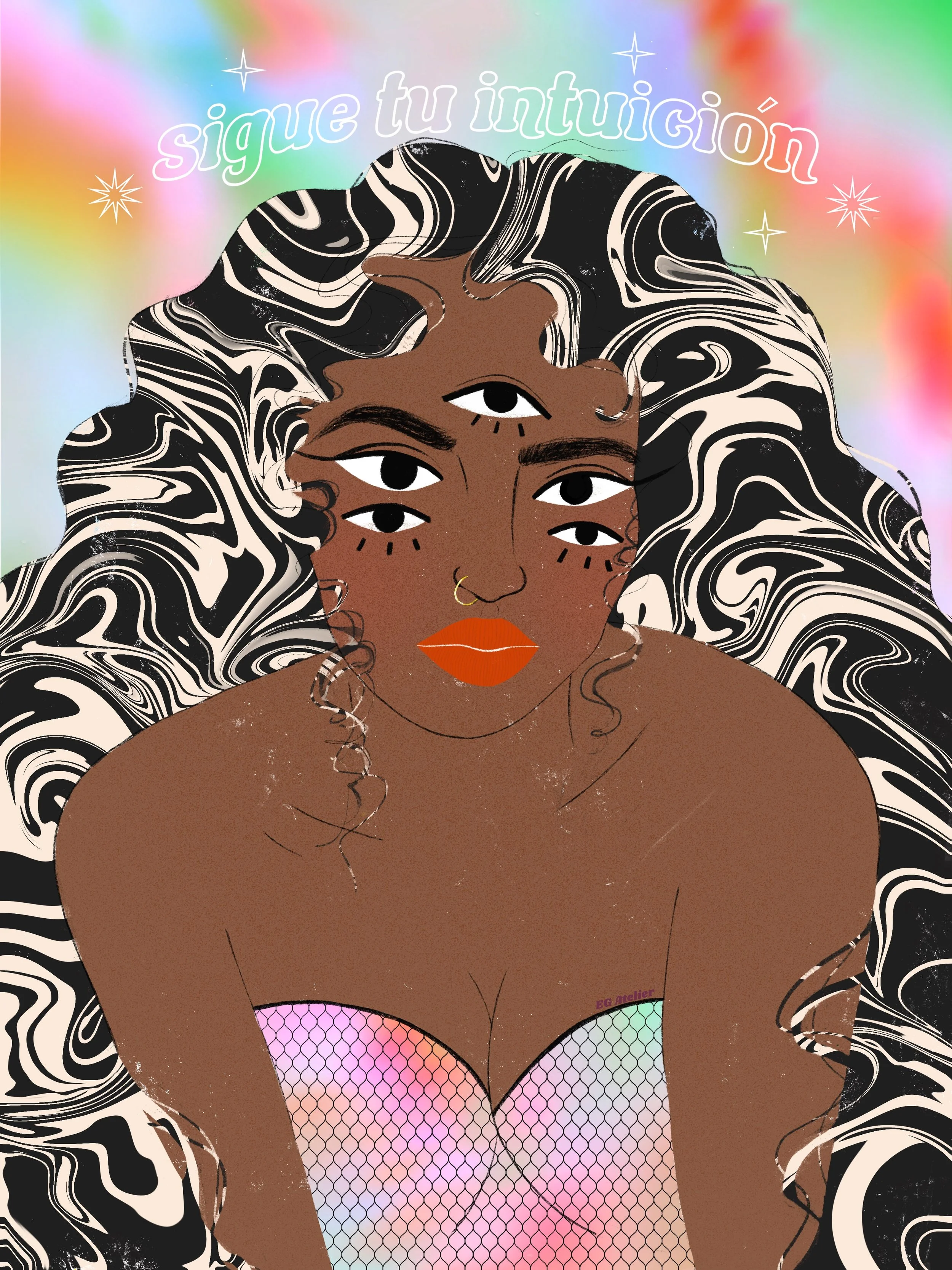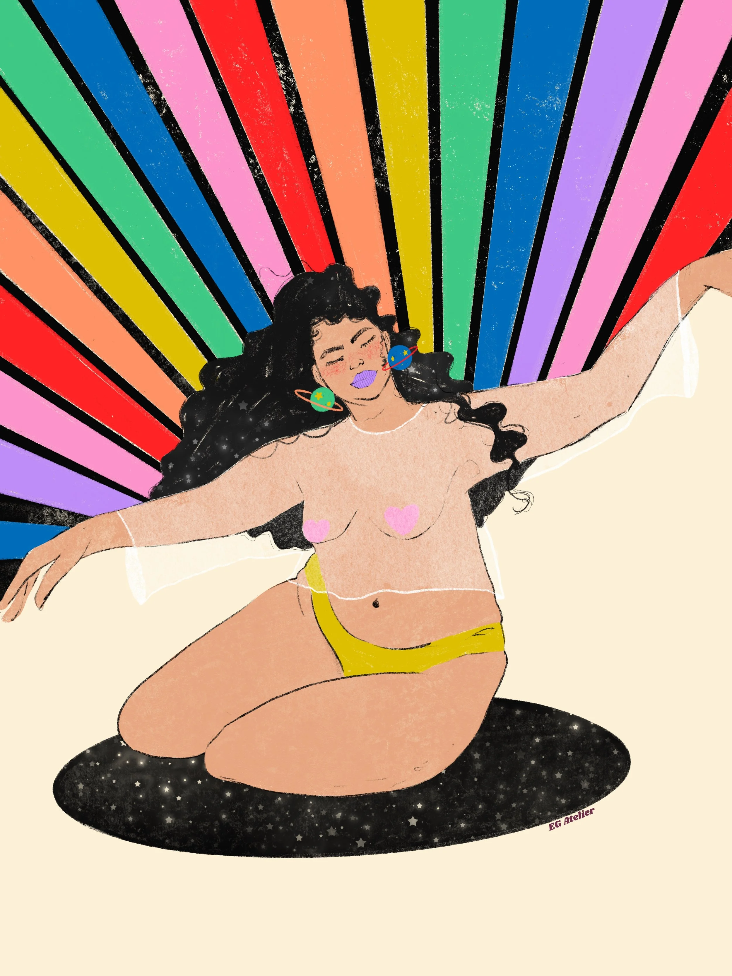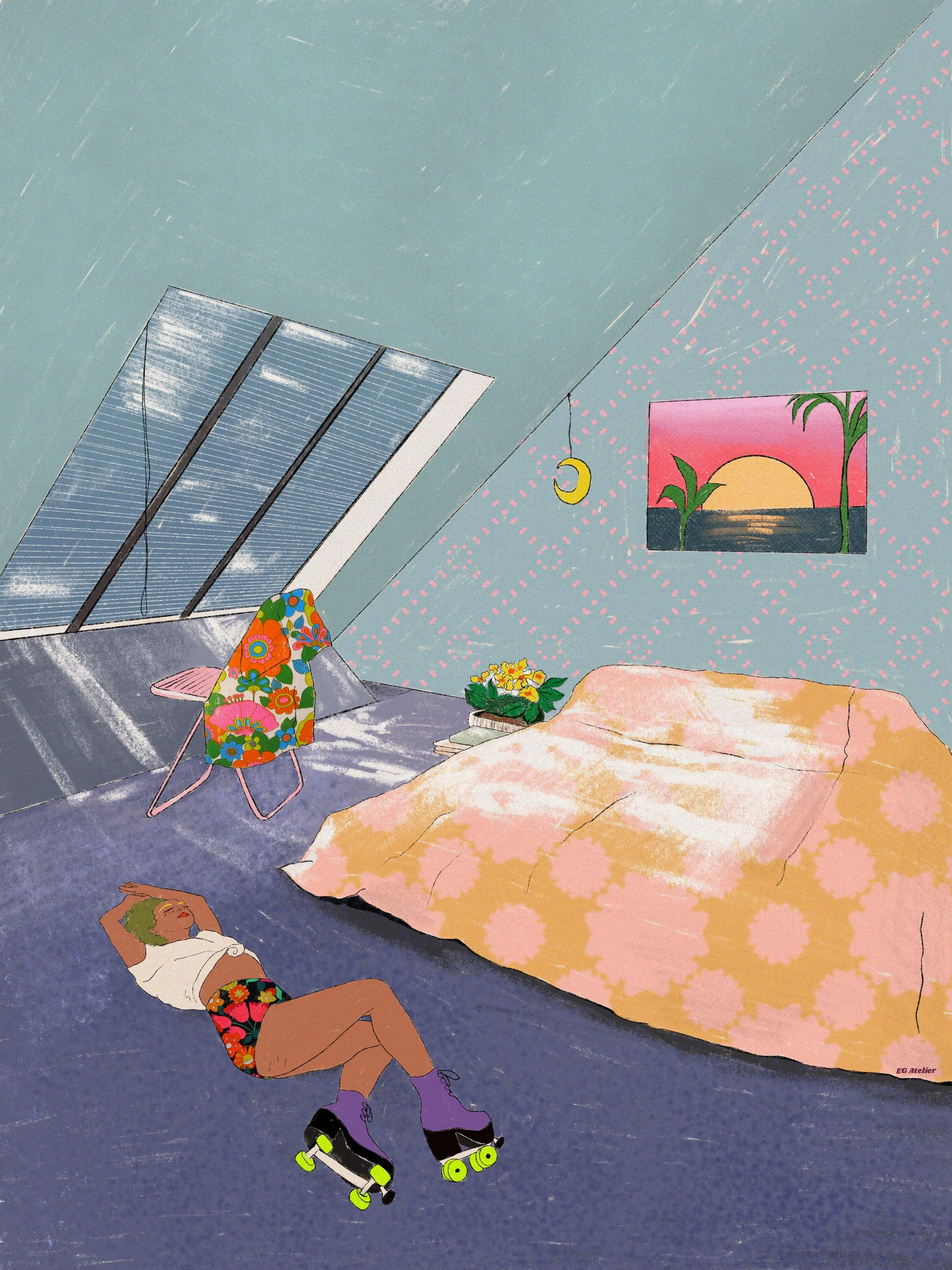 The main character in most of my work is color. As a former art teacher and guidance counselor I am heavily inspired positive psychology, by women empowerment and vintage art. Especially music festival posters from the 70s, 80s, and 90s. I like to evoke in the viewer feelings such as nostalgia and joy through colorful,whimsical art with messages of encouragement. Because I believe art can be healing not only during it’s creation but also in appreciation.