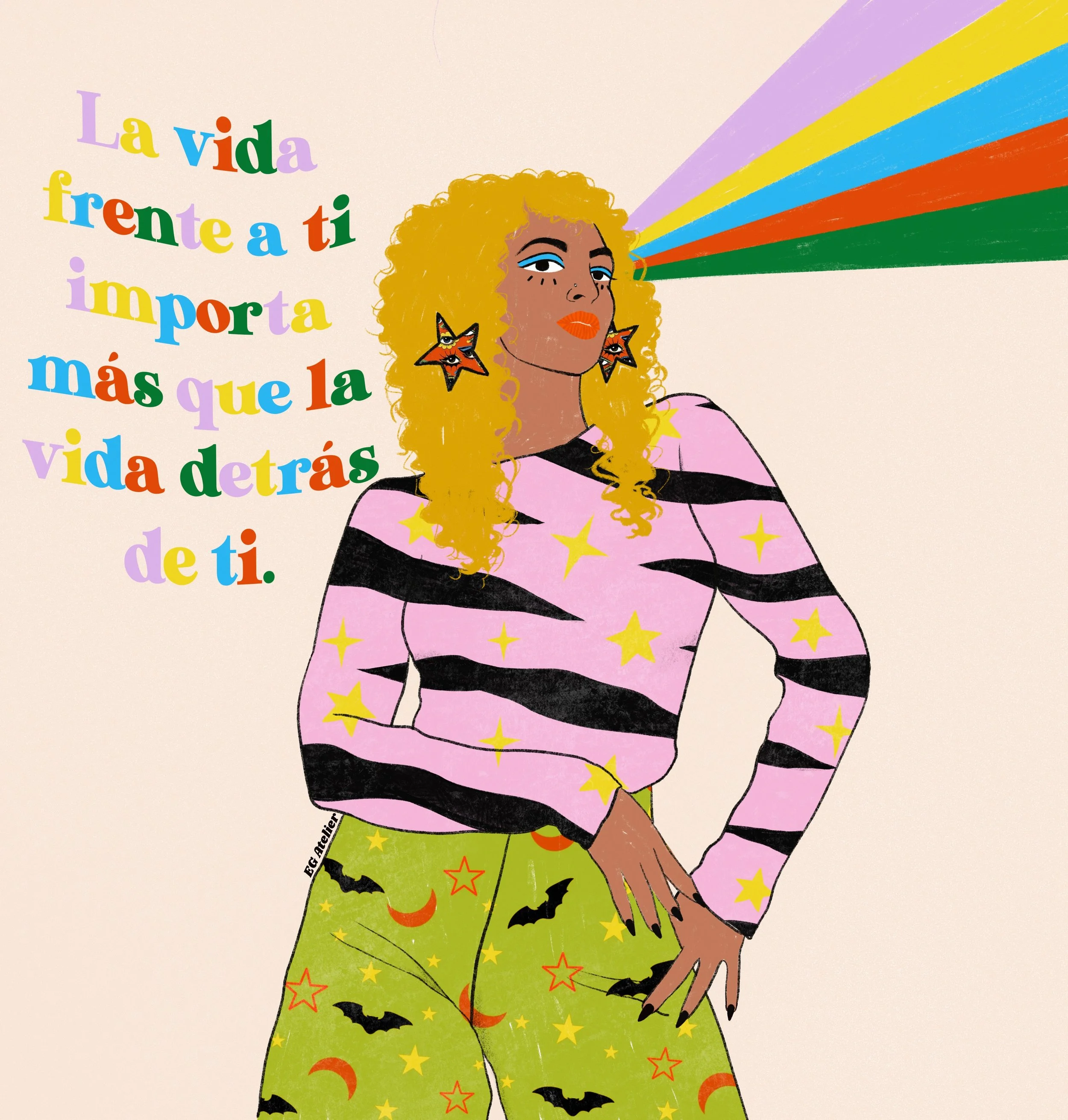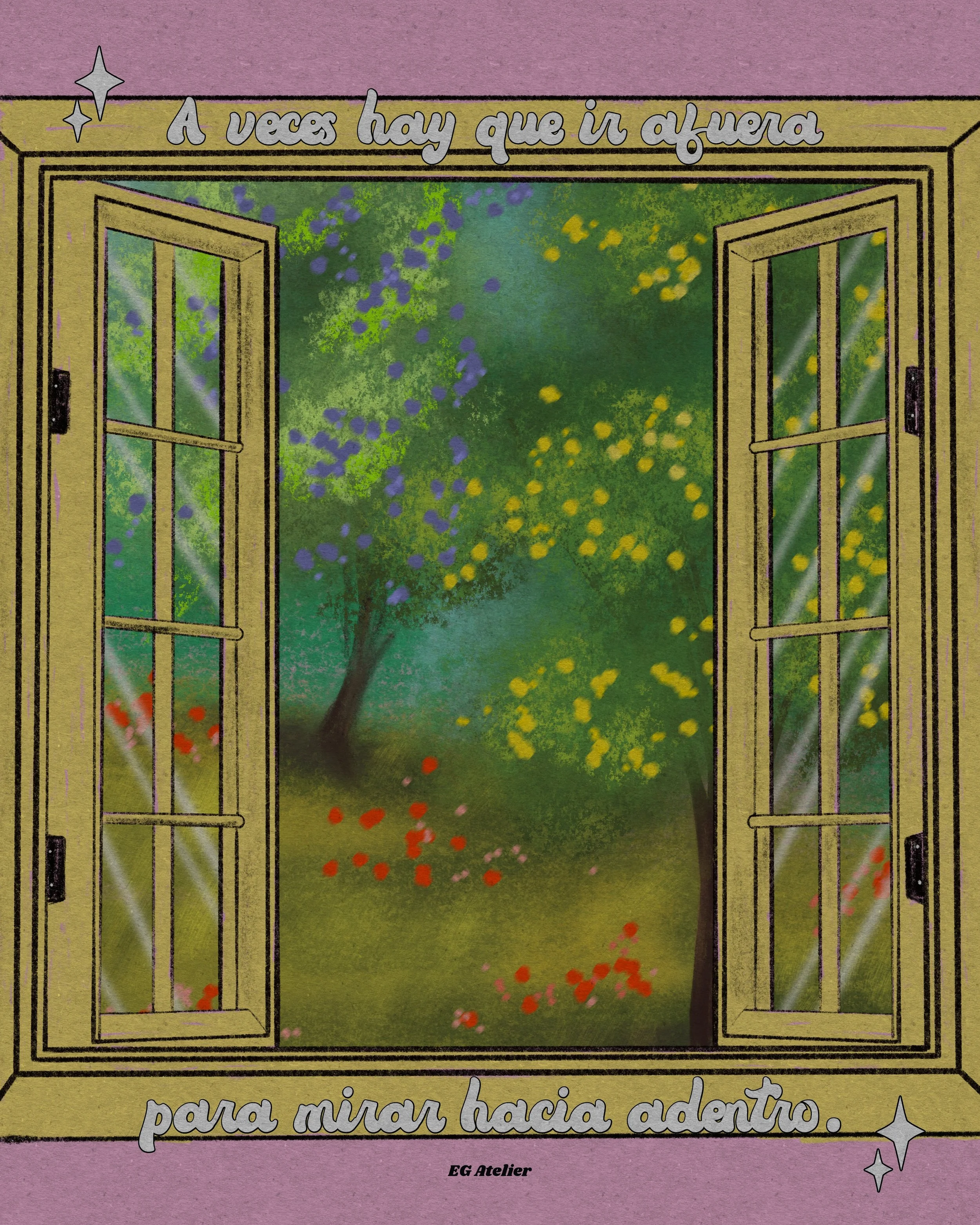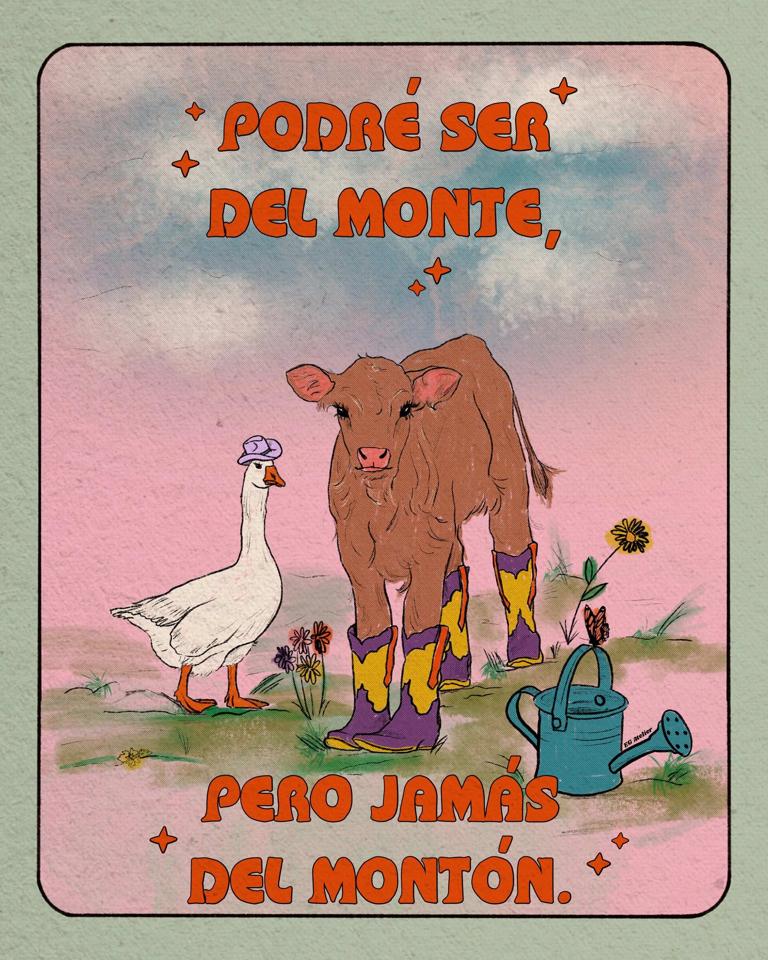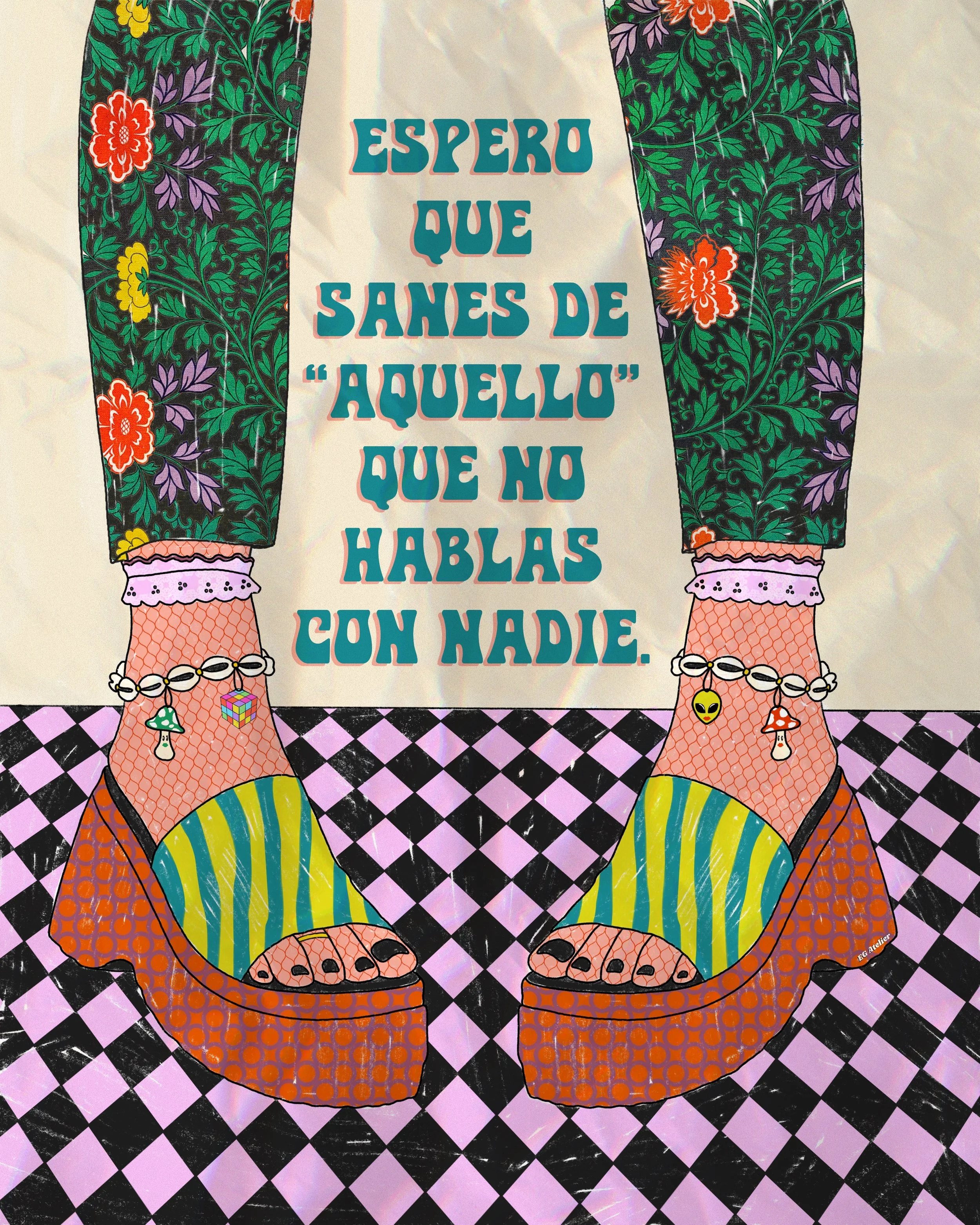 The main character in most of my work is color. As a former art teacher and guidance counselor I am heavily inspired positive psychology, by women empowerment and vintage art. Especially music festival posters from the 70s, 80s, and 90s. I like to evoke in the viewer feelings such as nostalgia and joy through colorful,whimsical art with messages of encouragement. Because I believe art can be healing not only during it’s creation but also in appreciation.