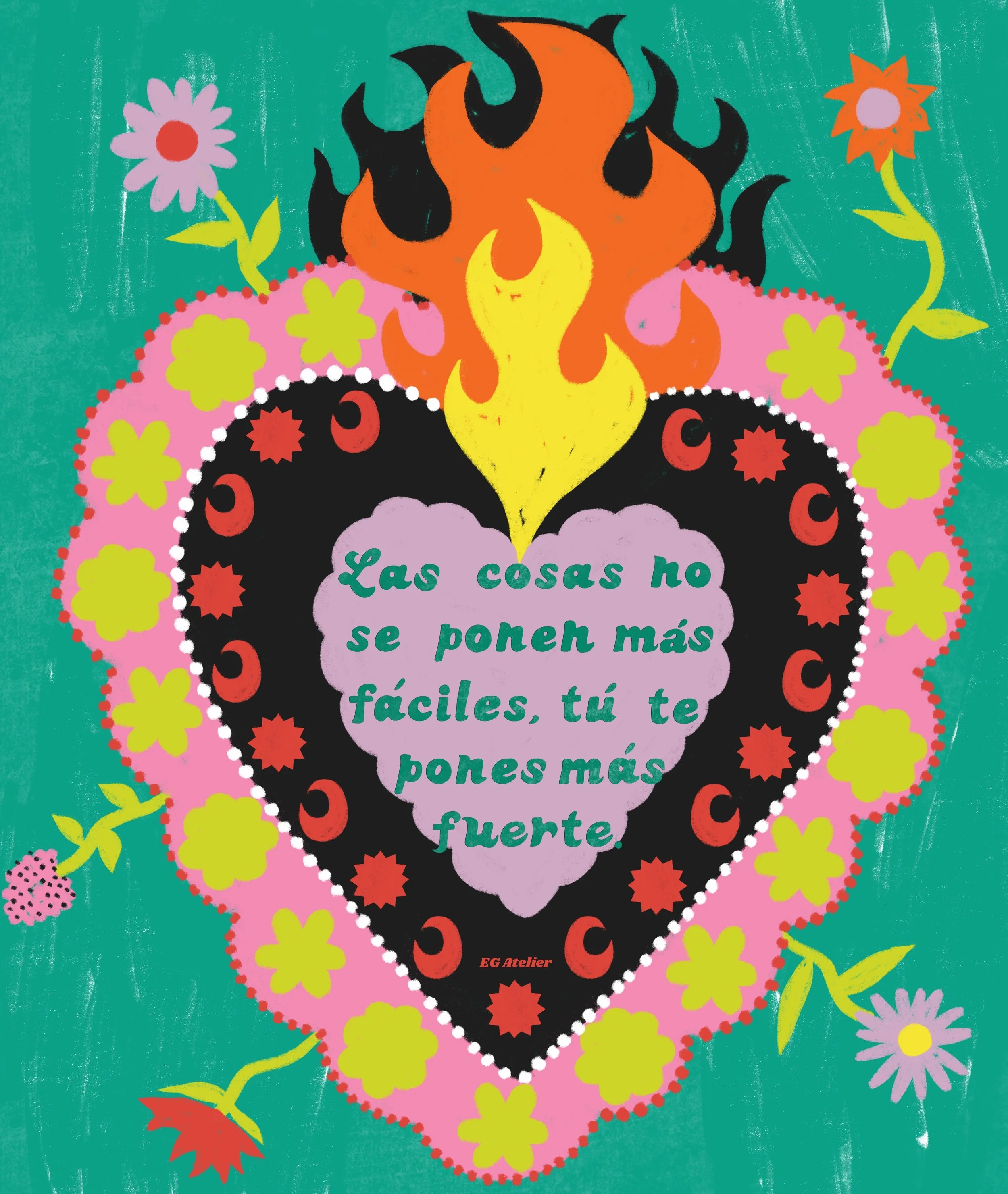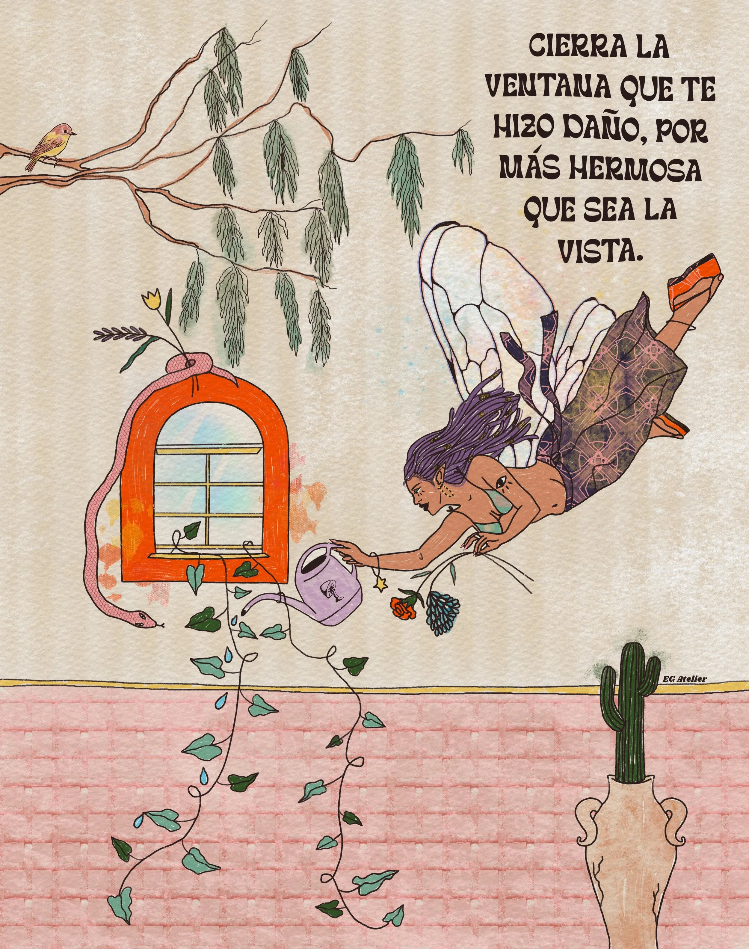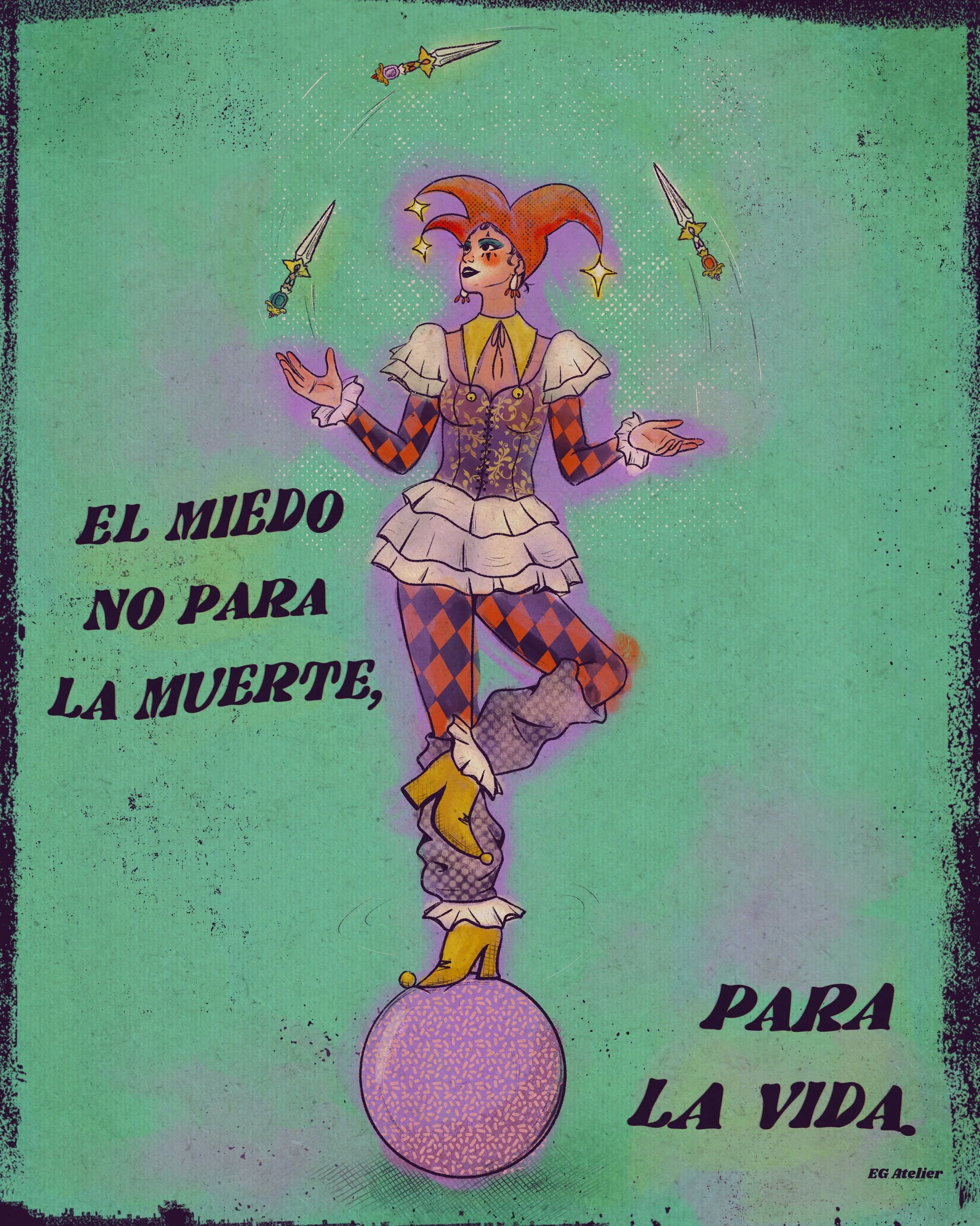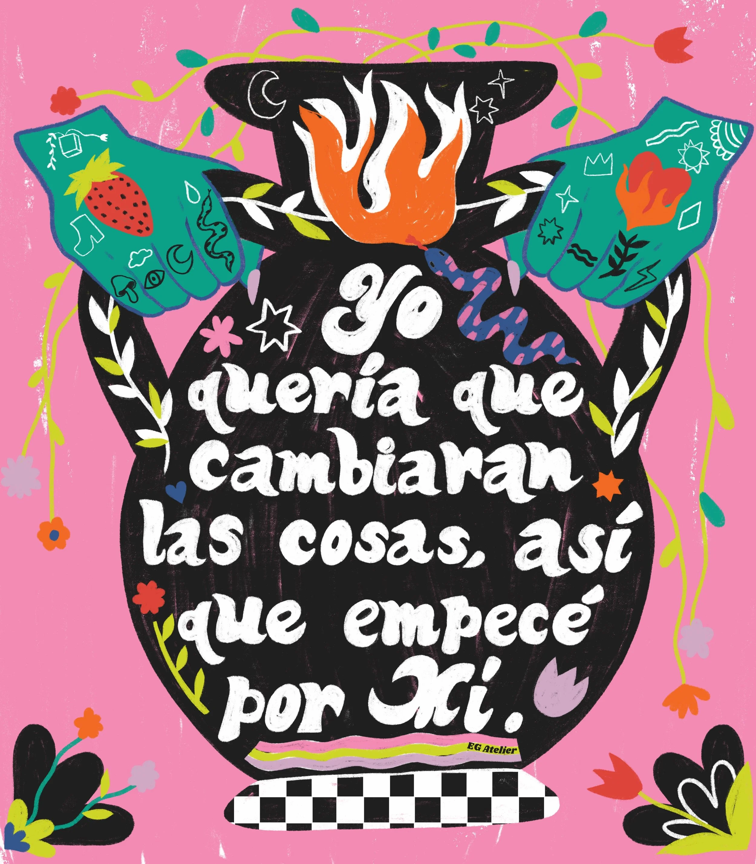 The main character in most of my work is color. As a former art teacher and guidance counselor I am heavily inspired positive psychology, by women empowerment and vintage art. Especially music festival posters from the 70s, 80s, and 90s. I like to evoke in the viewer feelings such as nostalgia and joy through colorful,whimsical art with messages of encouragement. Because I believe art can be healing not only during it’s creation but also in appreciation.